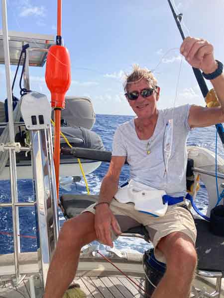 Yesterday and today were very nice sailing days. I had the rod out again and just before I was about to take a shower a fish took the bait. A big mahi-mahi it seemed. This time I wasn’t alone on deck and Jan Carel had quickly furled the genoa. It took about fifteen minutes and then the beast apparently had enough of it. It jumped out of the water and got itself unhooked. Gone was the fish. Fortunately, the lurer was still on, so I let the line out again. Less than five minutes later another fish. This time it did not last long. With tremendous speed the fish took a dive and it was gone. This time with lure and all….  The exact same thing happened to Marc later that afternoon. No fish and 3 lures down, we called it a day.