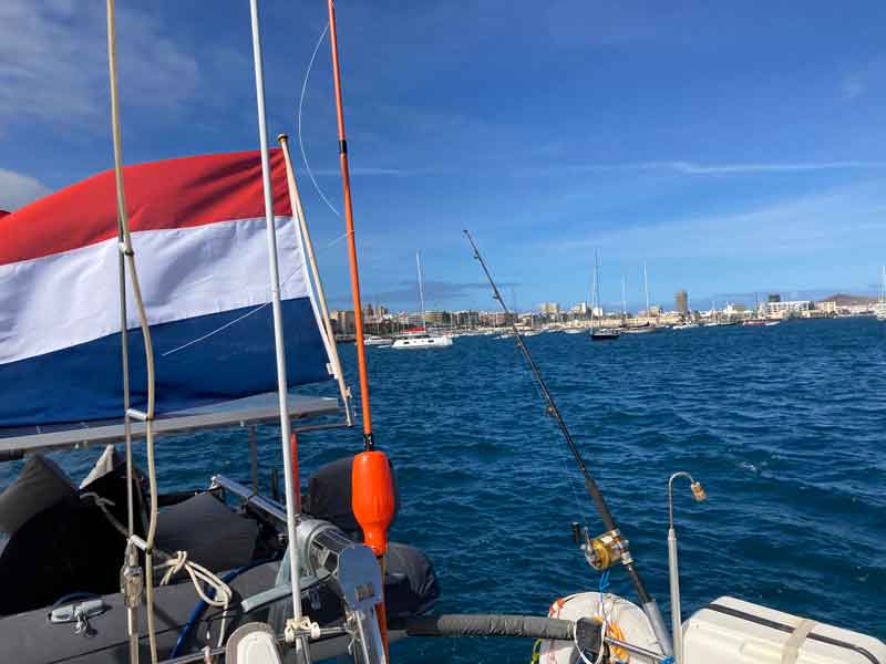 Every day at noon there is a roll call over the SSB and we noticed that the windmeter then sort of comes back to life again. It briefly shows a windspeed although incorrect but still, it’s doesn’t seems broken. Possibly the SSB is causing the malfunctioning after all. It stopped working when we went out for the trial sail in Las Palmas to test the autopilot. Marc then also tested the SSB for the first time transmitting. Well, that’s something on our list when we get to St. Lucia.