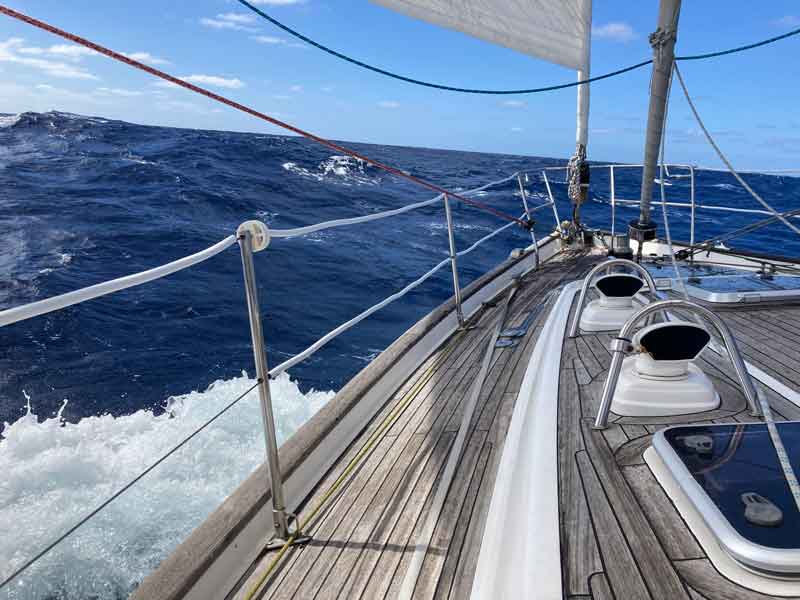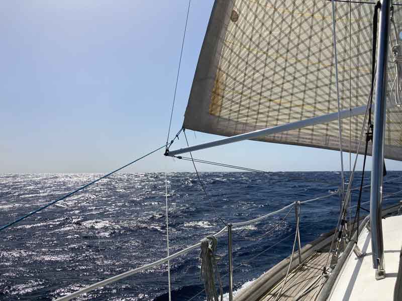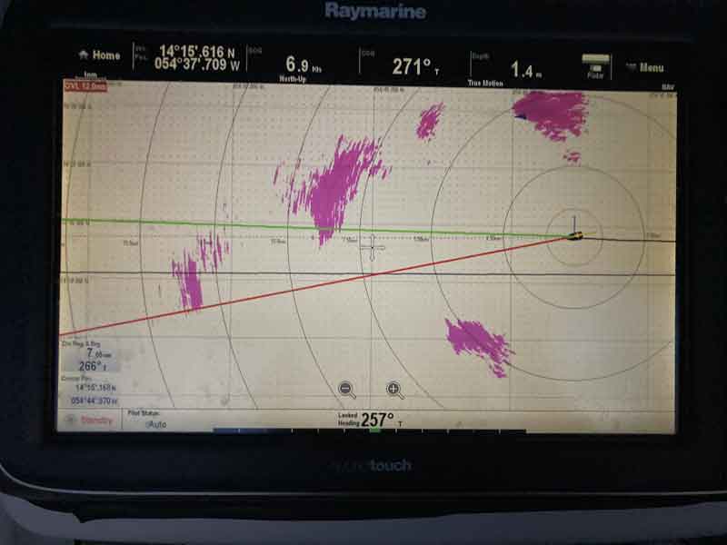 We are now sailing 260° downwind over port. All reefs are shaken out and we’re doing over 8kts SOG, steering straight towards St Lucia.
