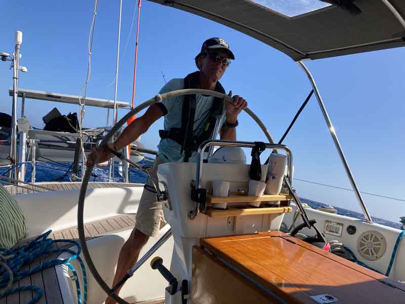 During the day, we now handsteer most of the time. That saves a lot of power, and it keeps the boat much more stable. On handsteering, you steer by the wind and not on the course. The autopilot can only steer on course because we still don’t have any windspeed.