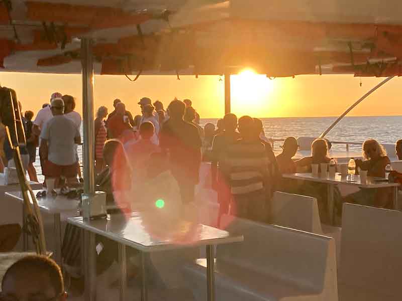 On my last evening an ARC trip to Marigot bay was on the program. On a party catamaran we sailed into the sunset with lots of music.
