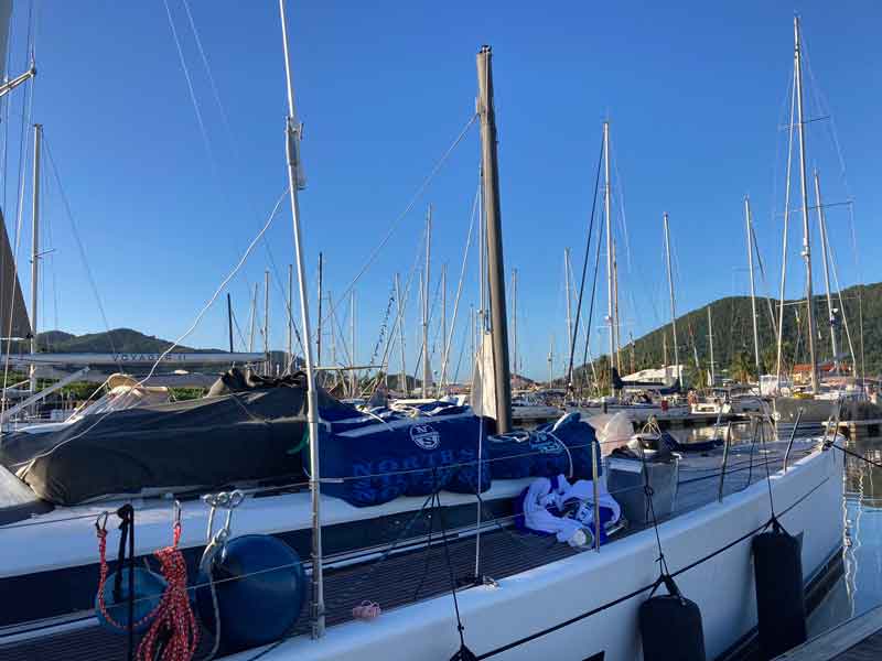 The following days were taken by faultfinding. With the help of an electrician and later 2 people from Raymarine, we checked all the connections and components. All components appeared to be functioning properly. Although checking the cable in the mast gave no error message, according to the Raymarine guys it should still be the cable. The mast unit did work with a new cable down below. However, after Marc and I fed a new cable into the mast, we still had no wind speed, direction but no speed. That’s when we gave up. Wind direction is important, speed not really. In St Lucia, we will figure it out further.