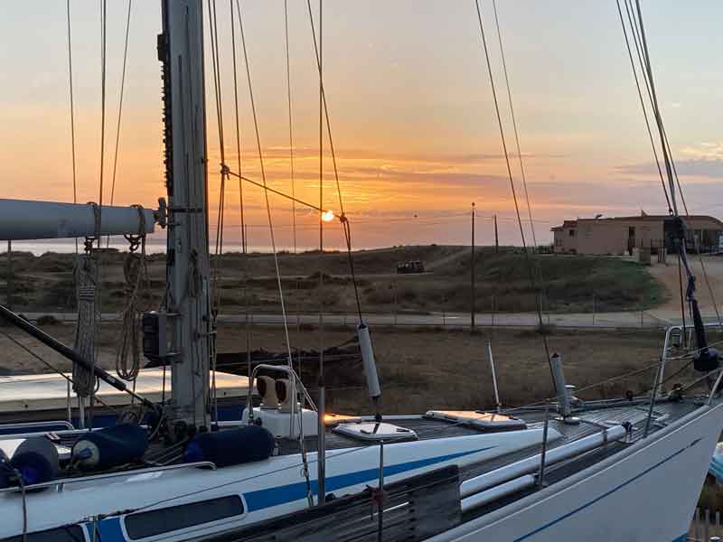 Saturday we sailed on again. The plan was to sail on to Culatra or even Lagos in one go. But shortly after departure, the wind picked up considerably to eventually 40 kts. The forecast wasn’t not much better. It would stay like this all night.