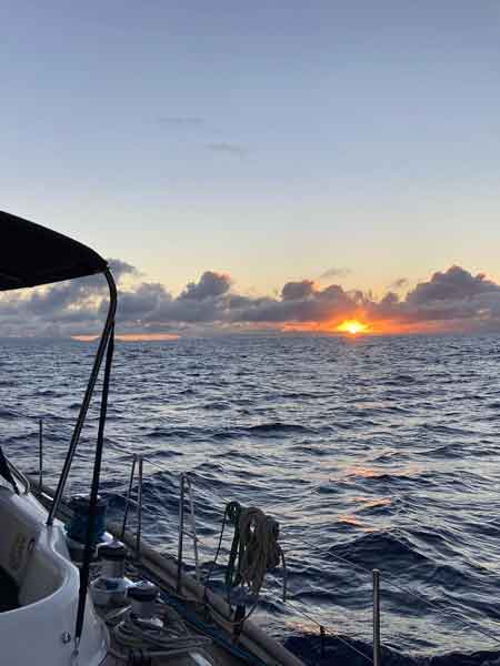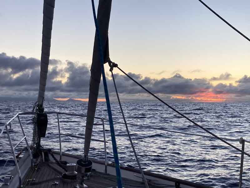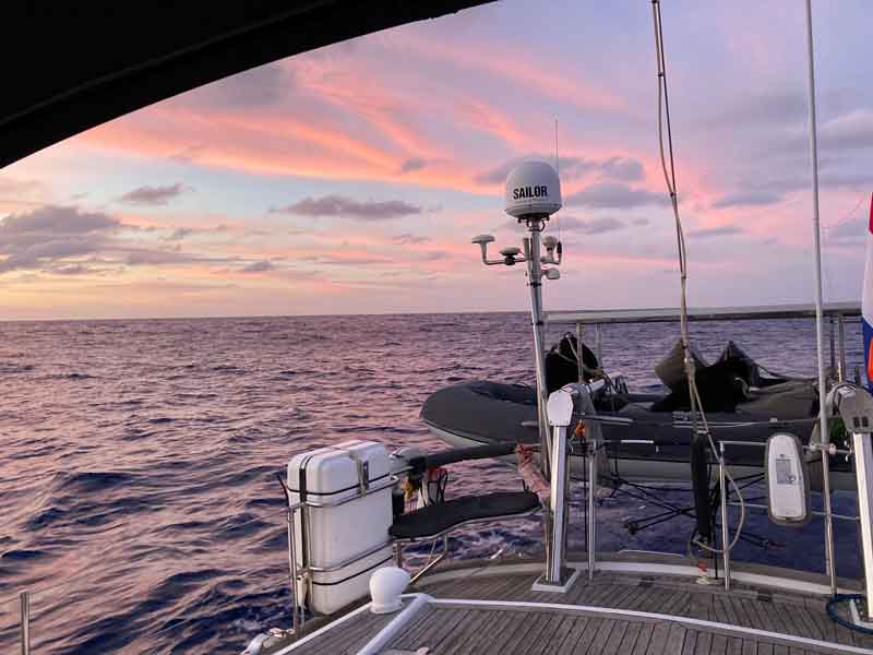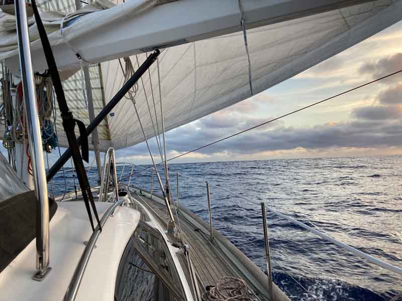 The first 5 days nothing happens except for a rig check. It turns out that two of the starboard spreaders show a hairline crack next to an old repair. That shouldn’t cause much of a problem but on the other hand, we’re about to do a circumnavigation and also, if something does happen, we might have a hard time explaining the insurance company we ignored the cracks.