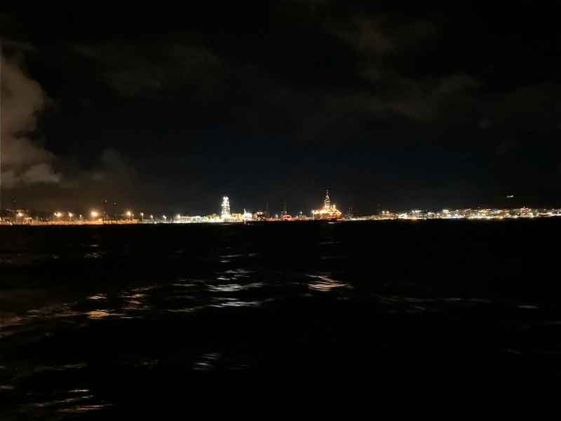 The plan was to sail to Culatra and anchor for the night. Not much later the wind dropped even more. We started the engine, motor-sailing at frist and later just motoring. By now we’d reach Culatra at 2 am. Not much point in spending the night there then and we decide to sail on to Lagos in one go after all.