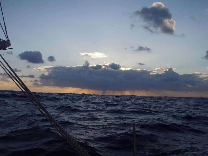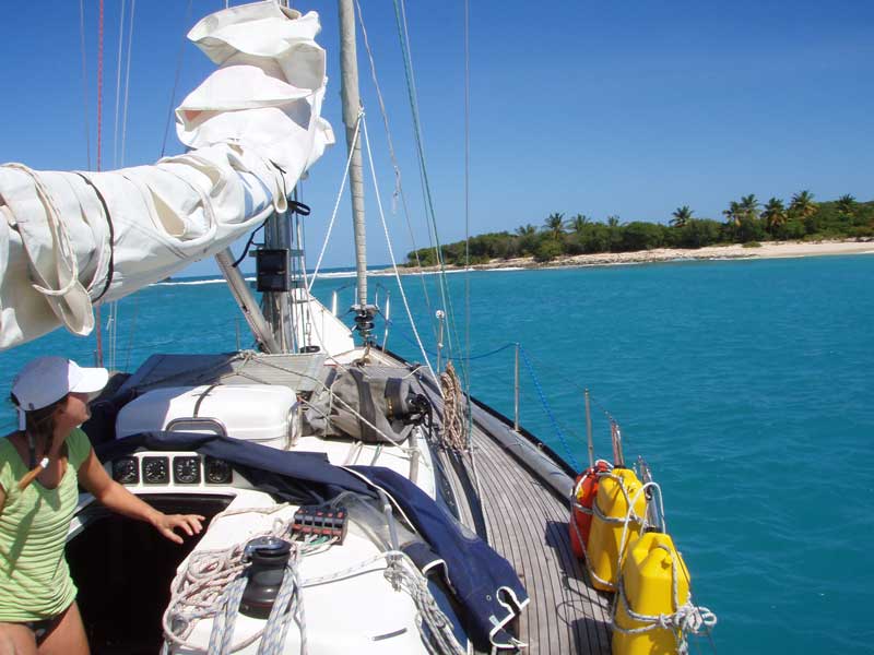 It took us 5 days to sail to Jost van Dyke, just west of Tortola. We had a really great sail. A beam reach most of the time and 20 to 25 kts. It was a good call to leave right away and we missed the bad weather.